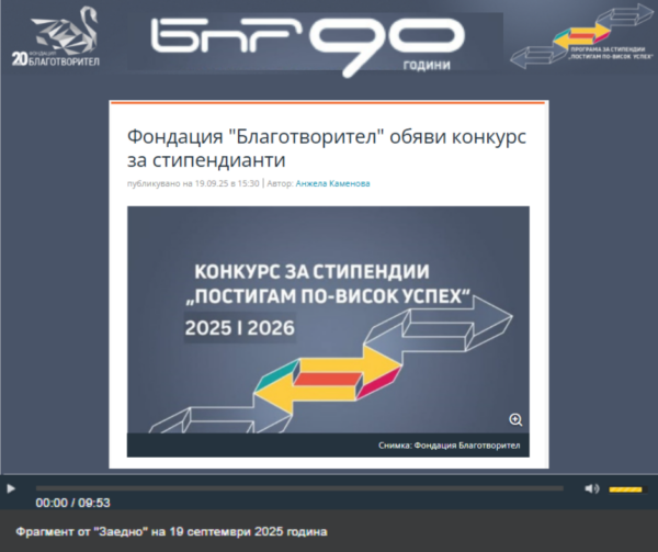 Приключи срокът за кандидатстване в стипендиантската програма на фондация „Благотворител“ – „Постигам по-висок успех“. В конкурса свои документи ни