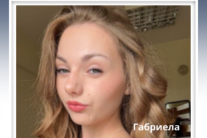 Габриела Иванова е на 17 г., 11 клас, от гр. Свищов. За трети път е стипендиант по програма “Постигам по-висок успех” на Фондация “Благотворител“. Общият й успех от предходната учебна година е мн. добър 5.00. Габриела се определя, като искрена и старателна. В гимназията изучава испански и английски език. Интересува